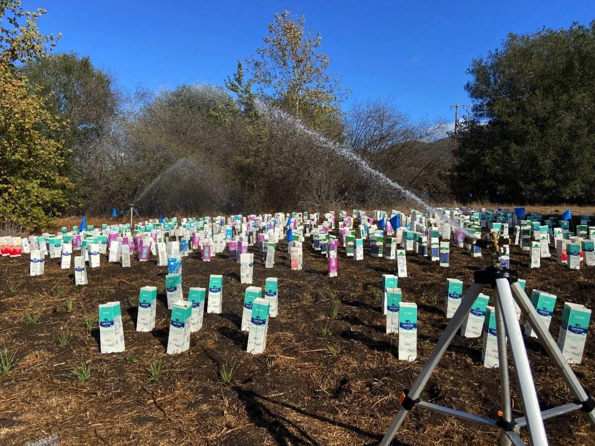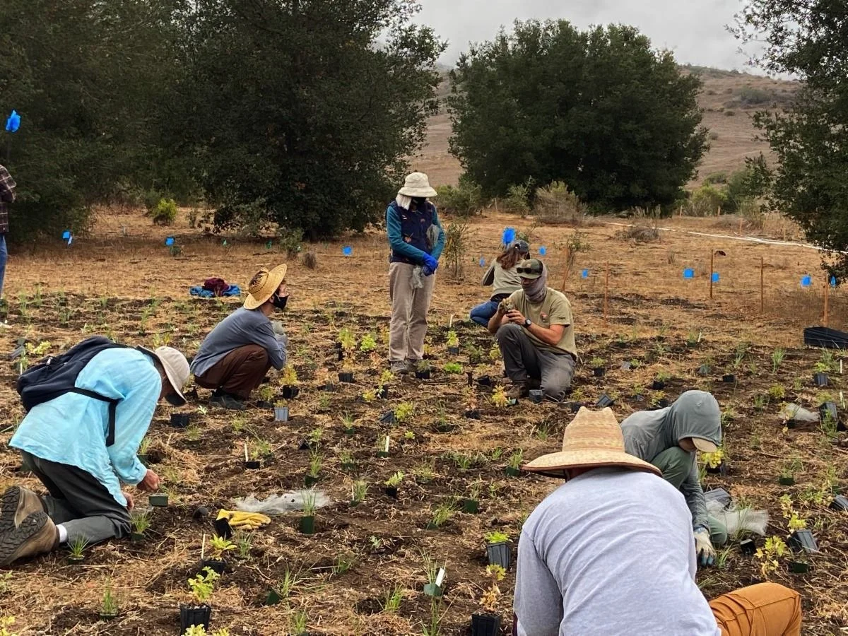 Over two weekends, the restoration crew worked alongside a few dozen volunteers and CNC interns to plant over 4,000 native plants along Potrero Creek at RSV. Only 46,000 to go! Capstone students from CSUCI set up experimental plots among the plantings to test the effectiveness of cages for roots and above ground growth to protect against herbivory.