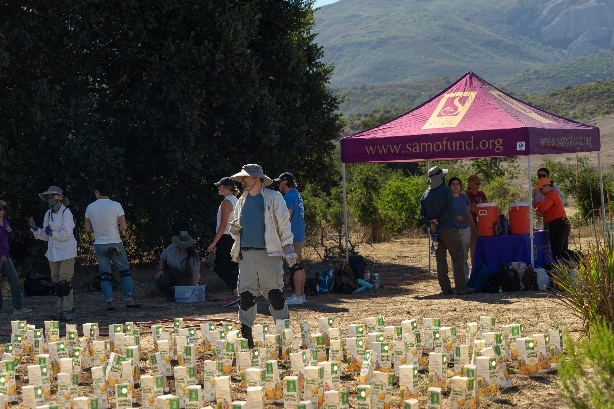 Saturday September 24, 2022, was a National Public Lands Day, hosted by Santa Monica Mountains. Over 115 volunteers joined the NPS and SAMO Fund for a morning of planting native seedlings at Rancho Sierra Vista and Satwiwa trails. By the end of the morning, three separate plots had been planted with a total of 3,000 consisting of 4 species: Stipa pulchra (purple needle grass), Verbena lasiostachys (Common Vervain), Grindelia camporum(Gum plant), and Sambucus nigra (Elderberry).